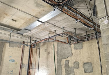 Pose de colonnes montantes, chemins de câbles, tirage et raccordement jusqu’au TGBT.